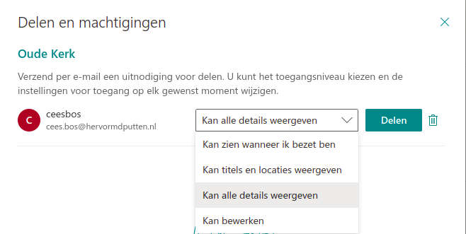 Aanvragen voor lees/schrijf toegang voor een agenda kunnen gestuurd worden naar agenda@hervormdputten.nl